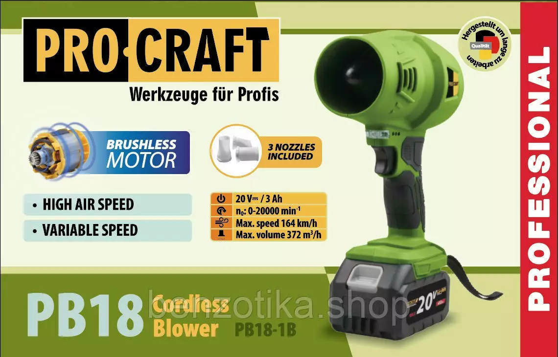 Аккумуляторная воздуходувка Procraft PB18 (1 АКБ 3 А·ч, зарядное