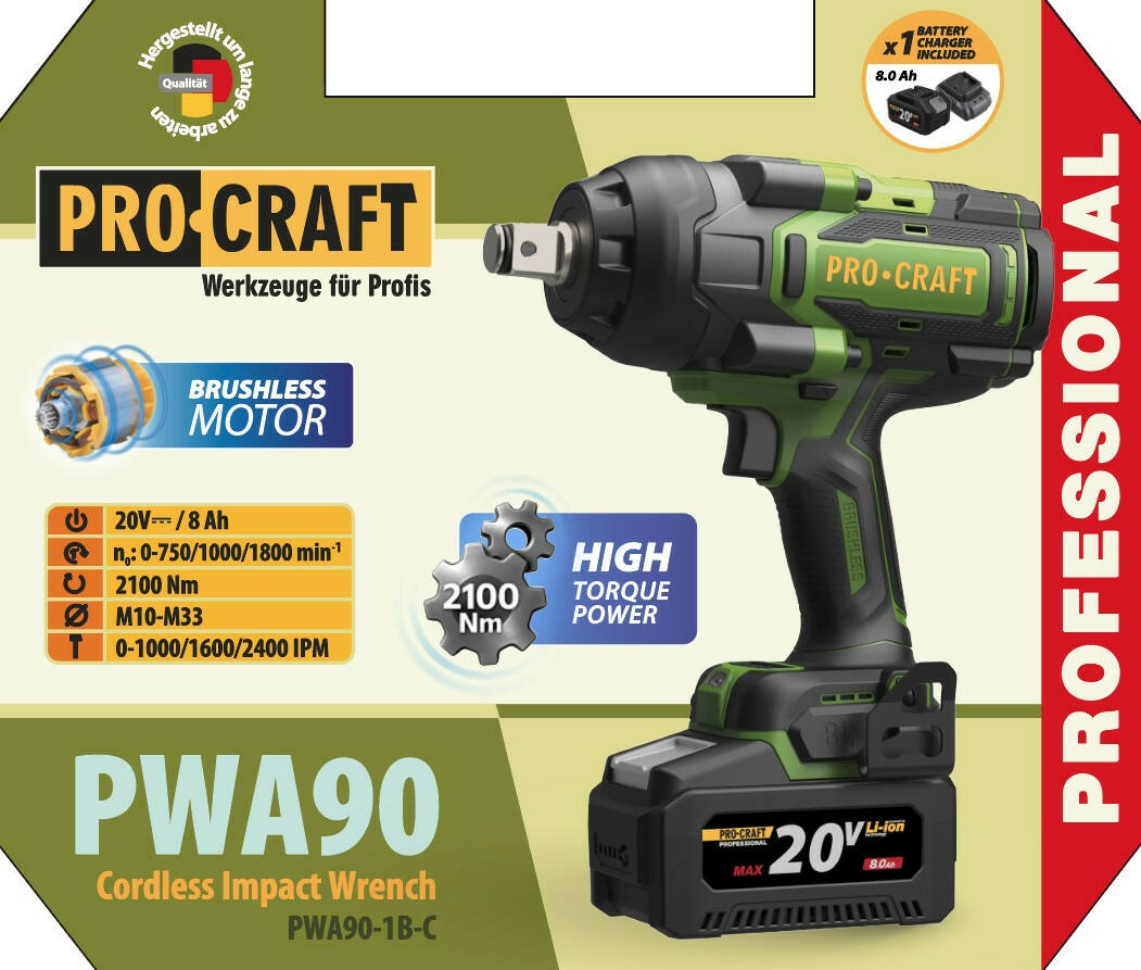 Аккумуляторный гайковерт Procraft PWA90 Кейс (с 1 АКБ и ЗУ)