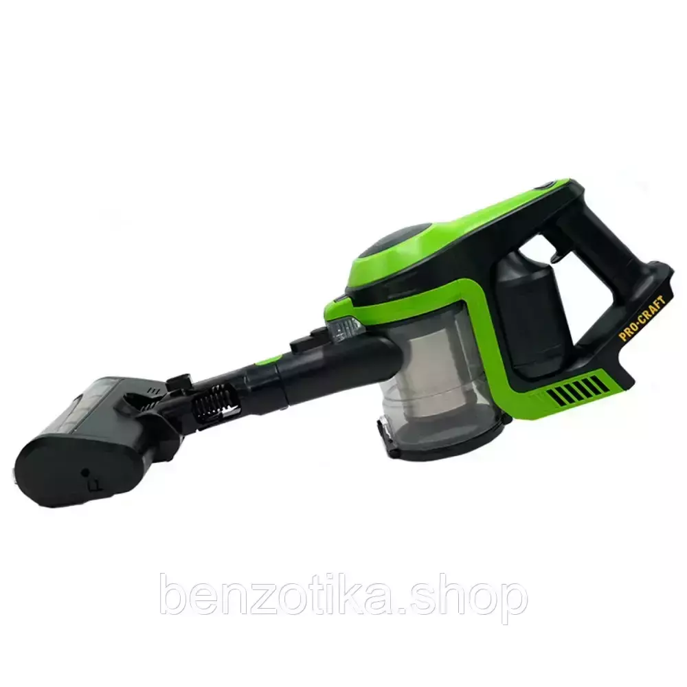 Пылесос работает от аккумуляторной платформы 20 В Procraft (аккумулятор и зарядное устройство приобретаются отдельно), что делает его отличным выбором для пользователей, уже имеющих инструменты этого бренда.