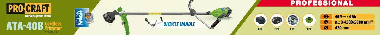 Аккумуляторный триммер Procraft ATA40B (1 АКБ и ЗУ) велосипедная ручка