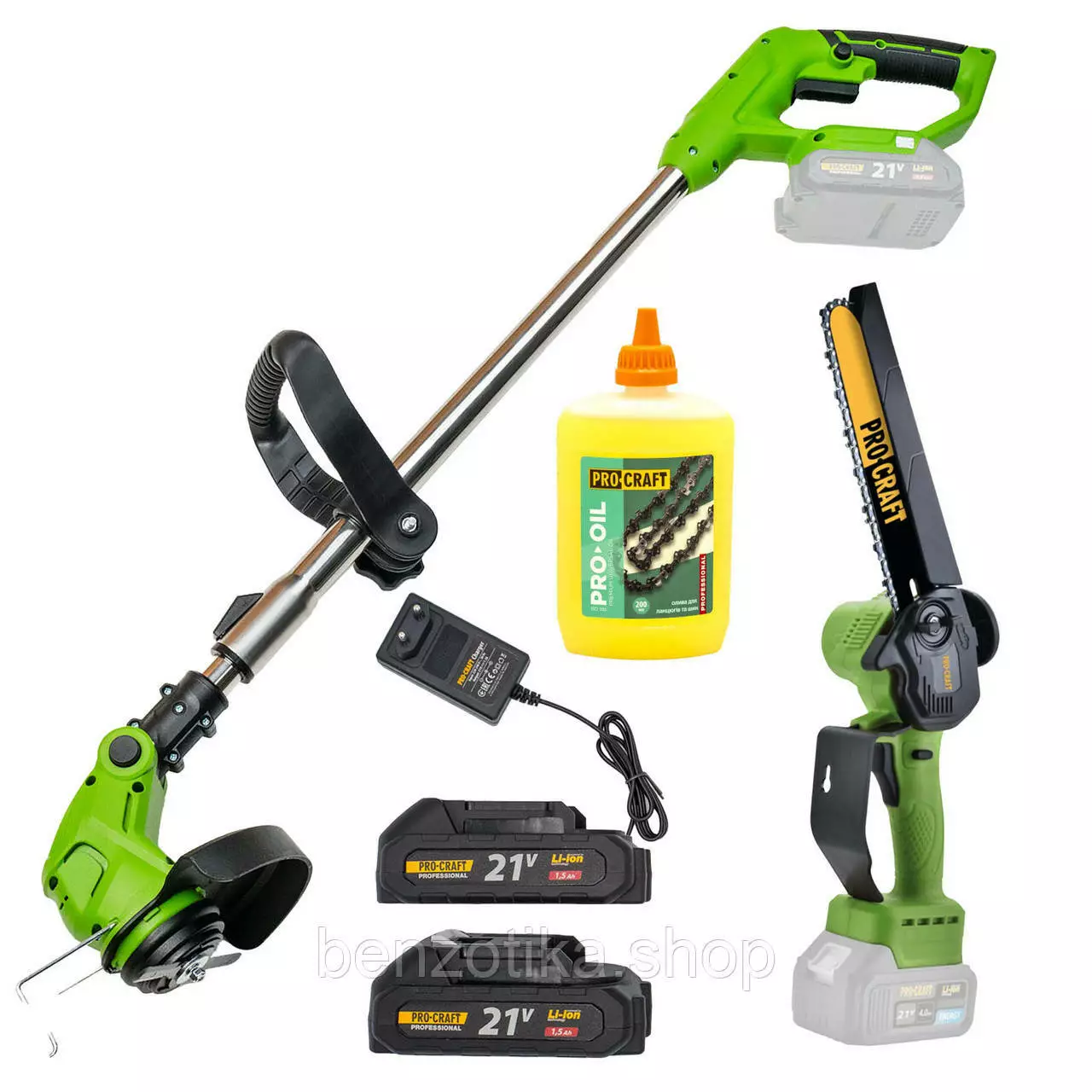 Акум пила Procraft PKA24Li + Акумуляторна коса Procraft PTA24 + Олива 200 мл