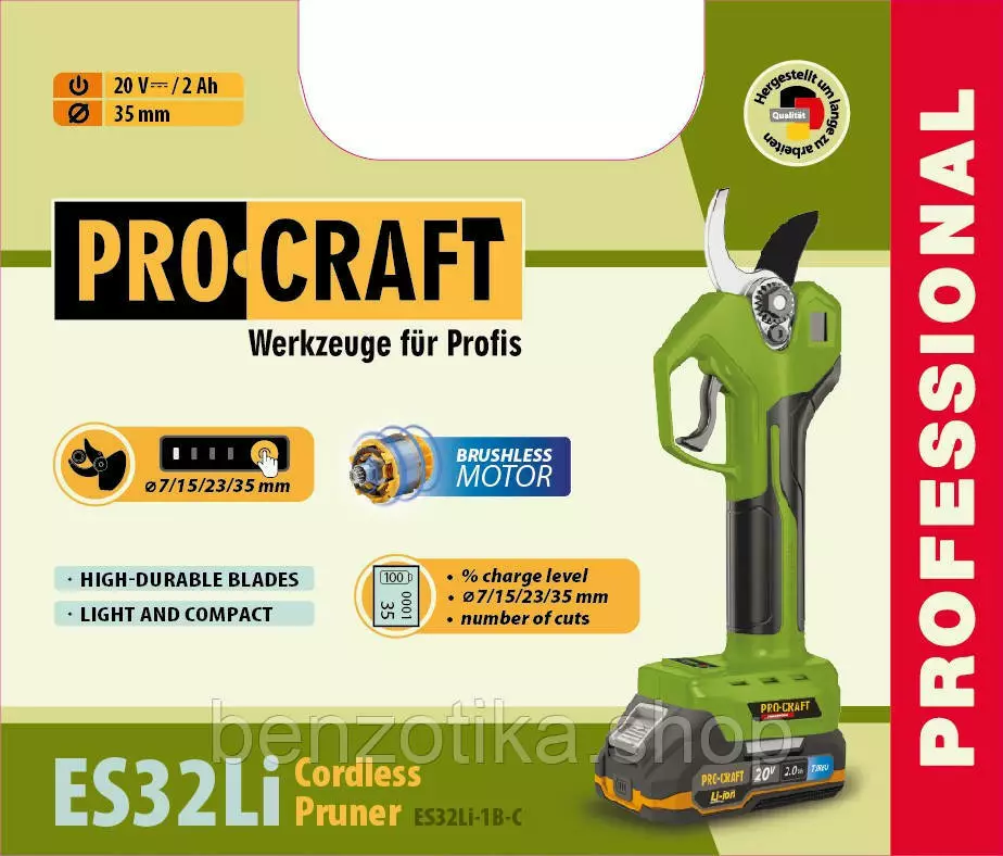 Аккумуляторный секатор Procraft ES32Li — это современный инструмент