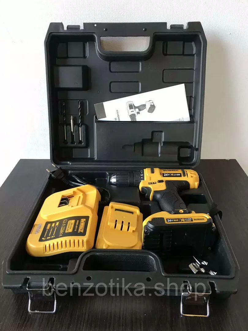 Мощная 24,0 В компактная дрель/шуруповерт последнего поколения с новыми уникальными аккумуляторами 4,0 Ач технологии XR Li-Ion.