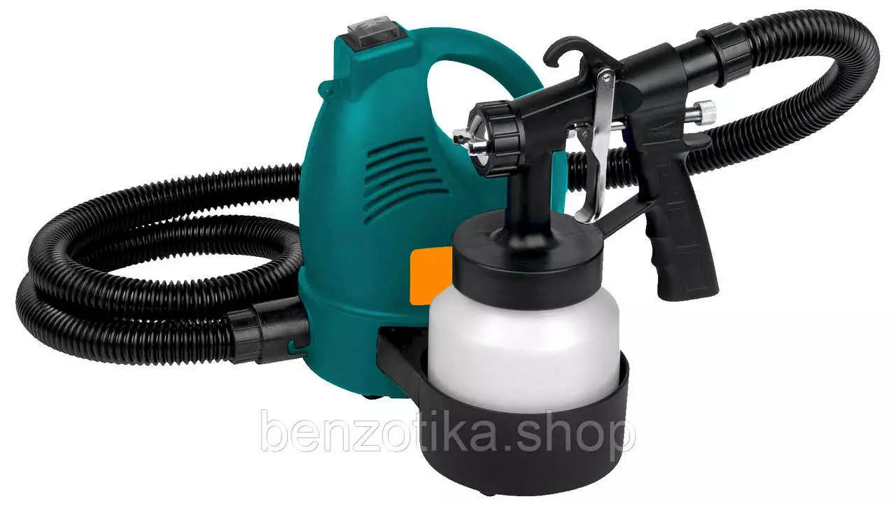 Краскопульт имеет довольно мощный 650 Вт мотор, что позволяет достичь хорошей производительности. Модель также оборудована вместительным бачком емкостью 0,8л, это обеспечит продолжительную работу без дозаправки.