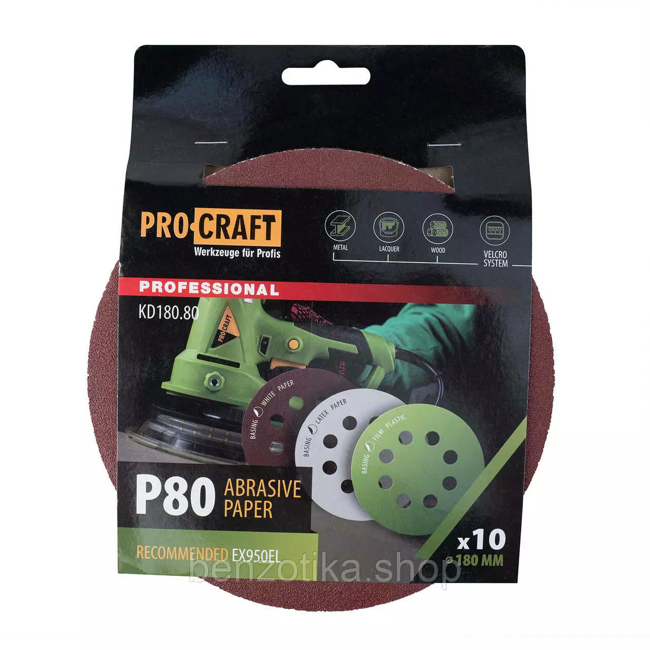 Круг шлифовальный самозацепной Procraft KD180.80 UNIVERSAL (набор