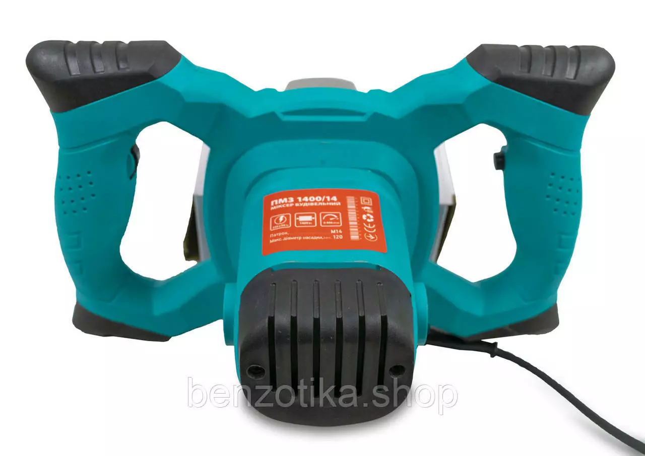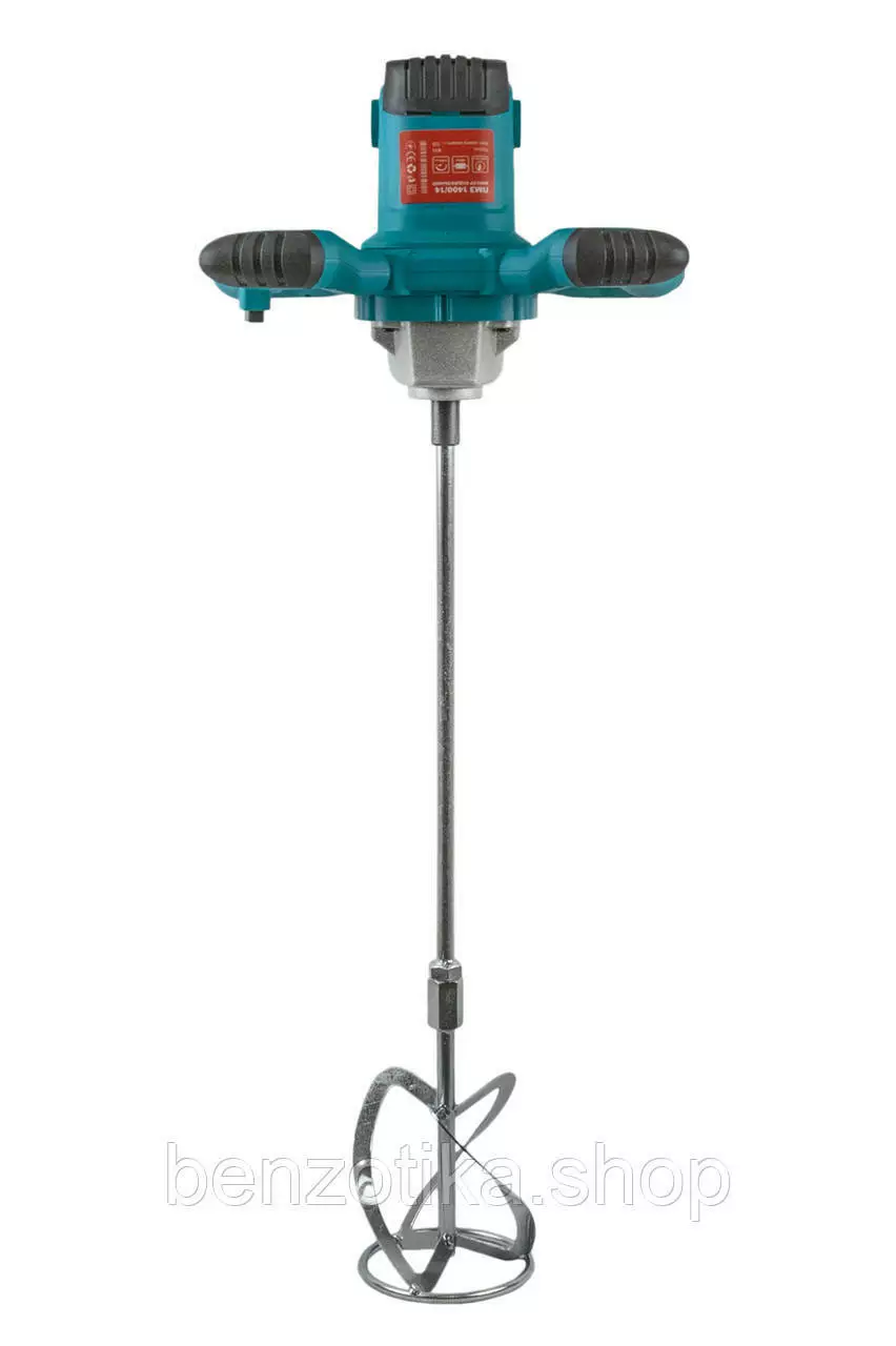 Высокая мощность 1400 Вт – легко справляется с цементными и гипсовыми растворами.